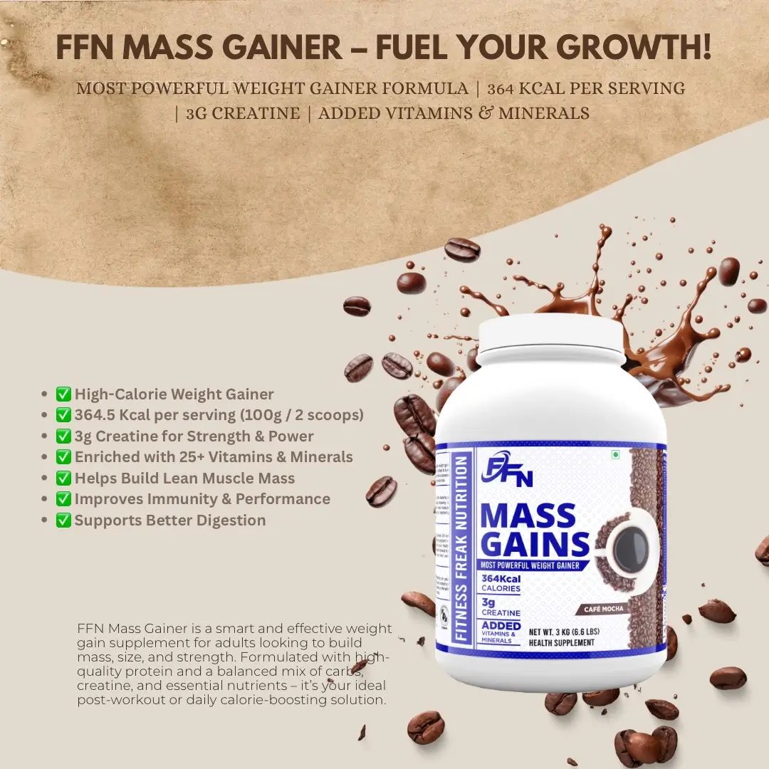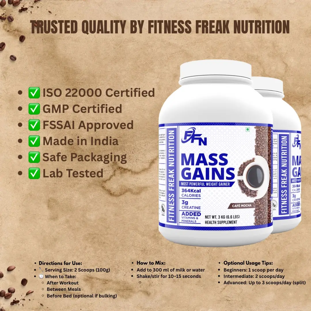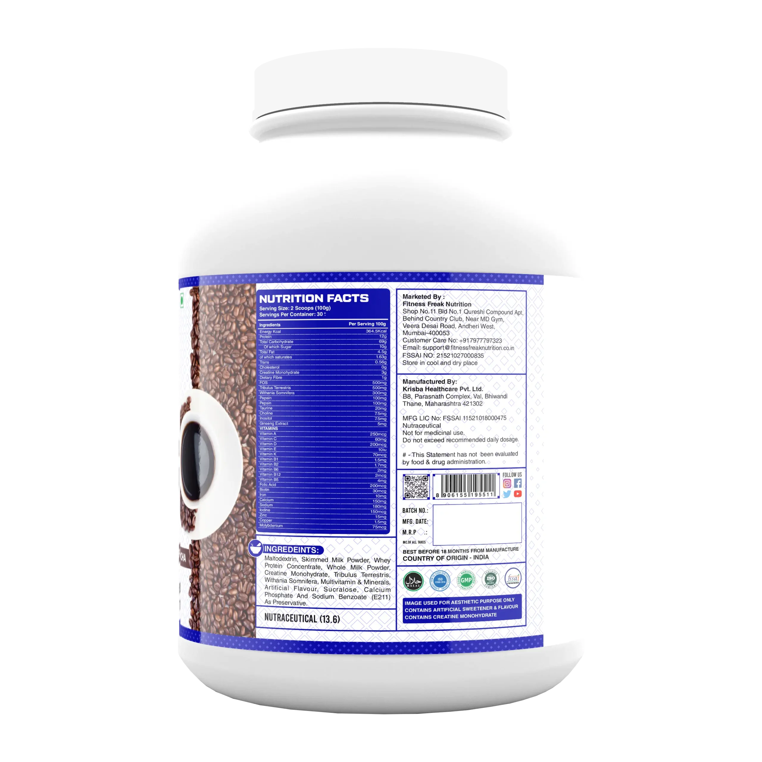 Elevate your fitness journey with Fitness Freak Mass Gainer, specially formulated for individuals aiming to build muscle mass and achieve strength goals. With its high-calorie content and a balanced blend of protein, carbohydrates, and essential nutrients, this mass gainer ensures your body gets the nutrition it needs to support rapid bulking and recovery. The delicious chocolate flavor makes every shake a treat, motivating you to stay consistent with your nutrition plan. Perfect for hard gainers and athletes, Fitness Freak Mass Gainer is designed to fuel your workouts, enhance recovery, and accelerate muscle growth without compromising on taste.