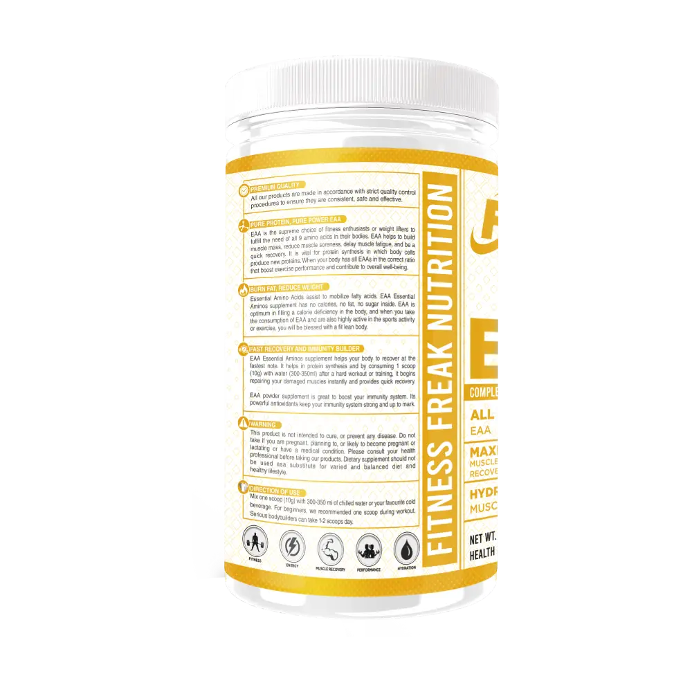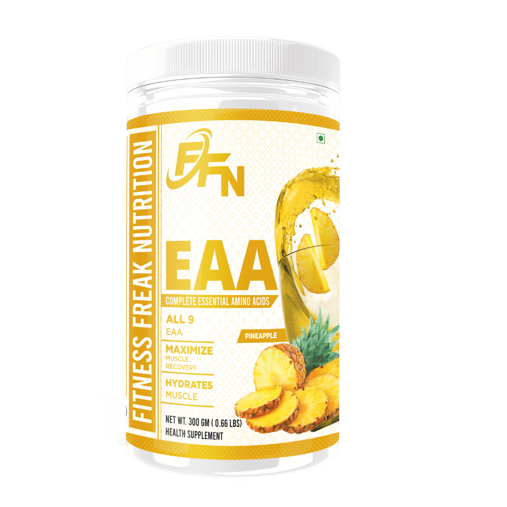 Fitness Freak Nutrition ULTRA EAA is a scientifically formulated supplement containing all 9 essential amino acids including Leucine, Isoleucine, Valine, Lysine, Threonine, Histidine, Phenylalanine, Methionine, and Tryptophan. These amino acids promote muscle repair, endurance, and hydration during and after workouts. The Watermelon flavour adds a refreshing boost while helping to reduce muscle soreness and enhance recovery for athletes, gym enthusiasts, and fitness lovers.